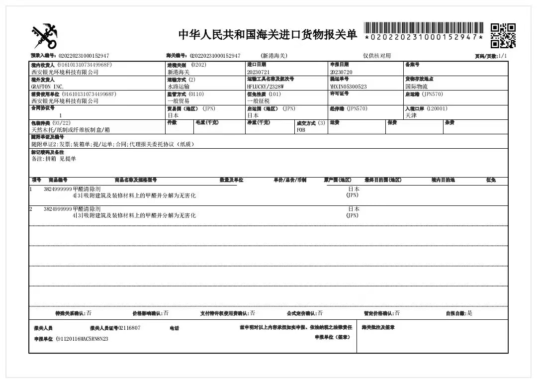 荃芬產品日本報關單憑據記錄。