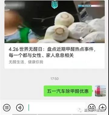 回復五一汽車除甲醛優惠”(如下圖)